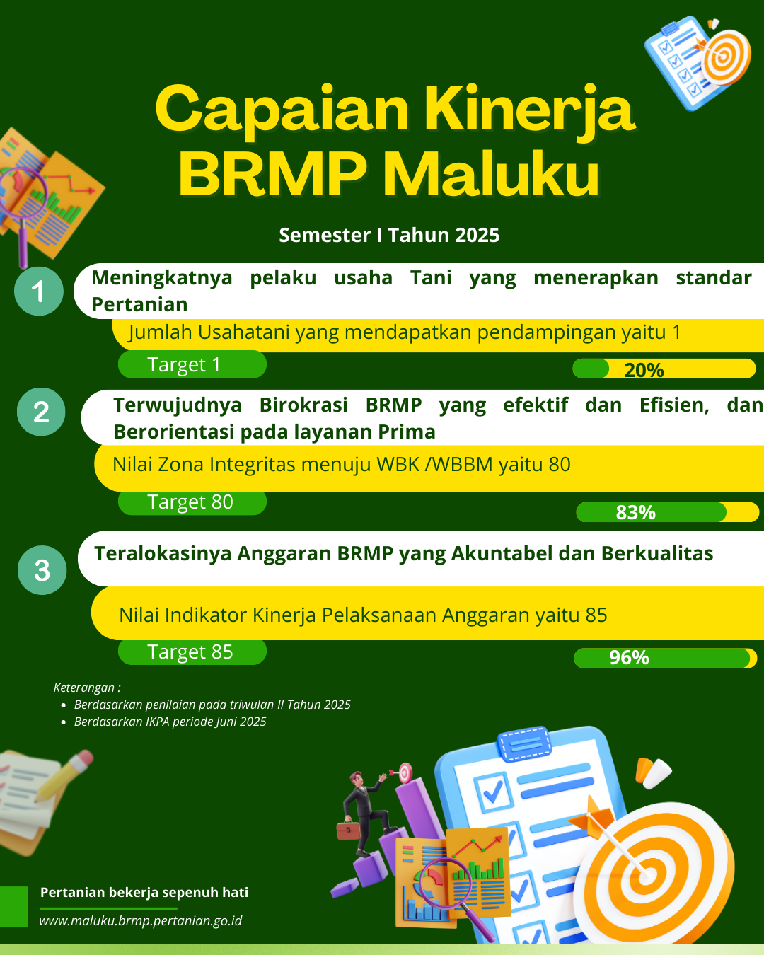 Tolak ukur capaian keberhasilan program kerja Badan Standardisasi Instrumen Pertanian per semester yang disampaikan dalam bentuk laporan maupun infografis